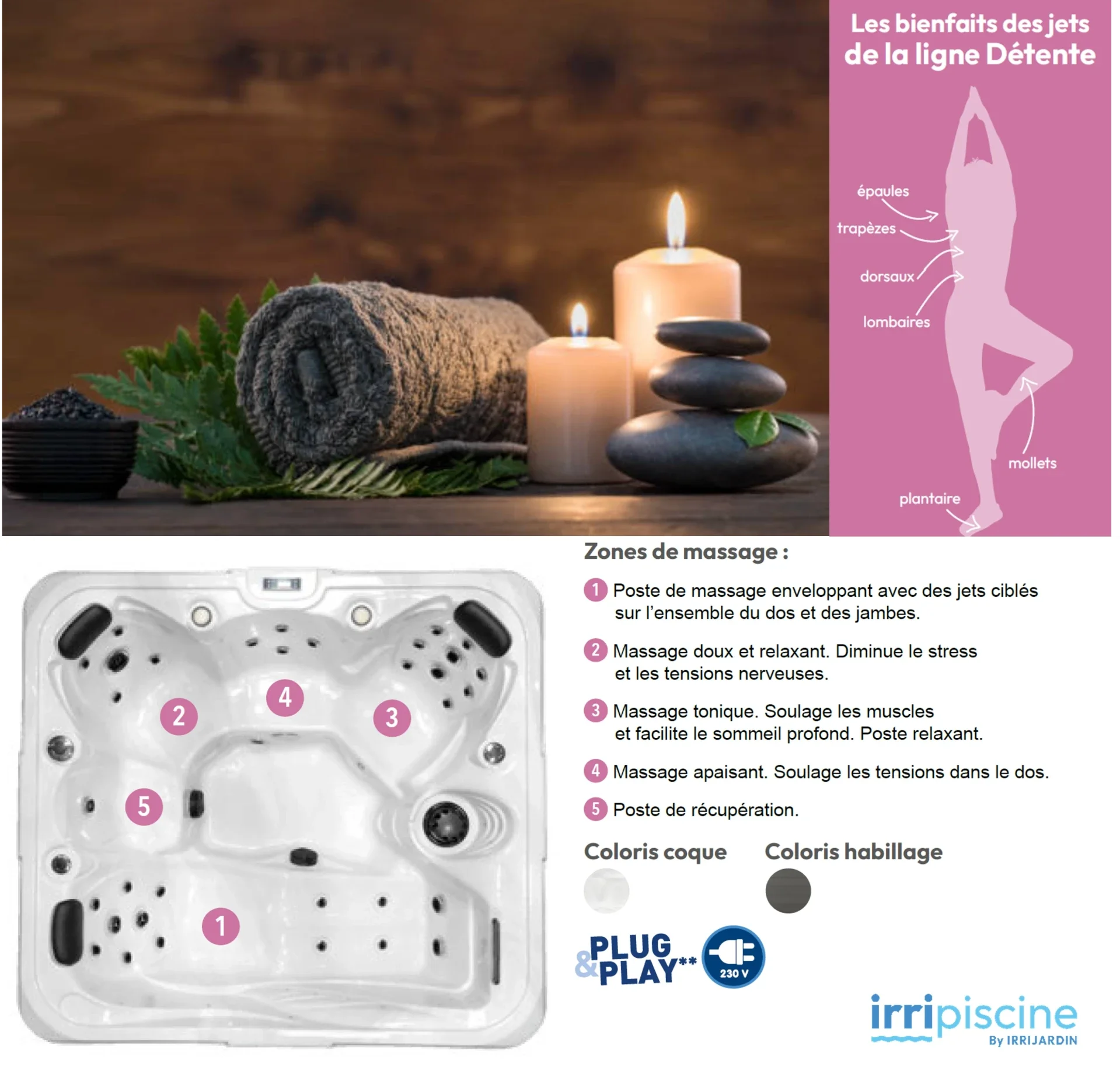 Un spa "plug and play" de 5 places est un choix idéal pour ceux qui cherchent à se détendre à domicile, avec une installation simple et un confort optimal.